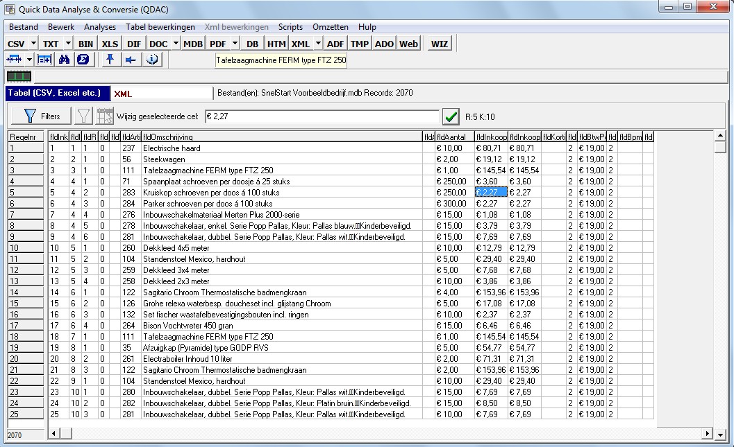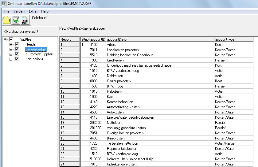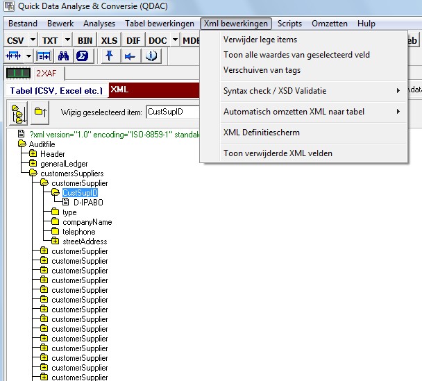 Read XML data as a table: tables and fields can be viewed an converted on various levels